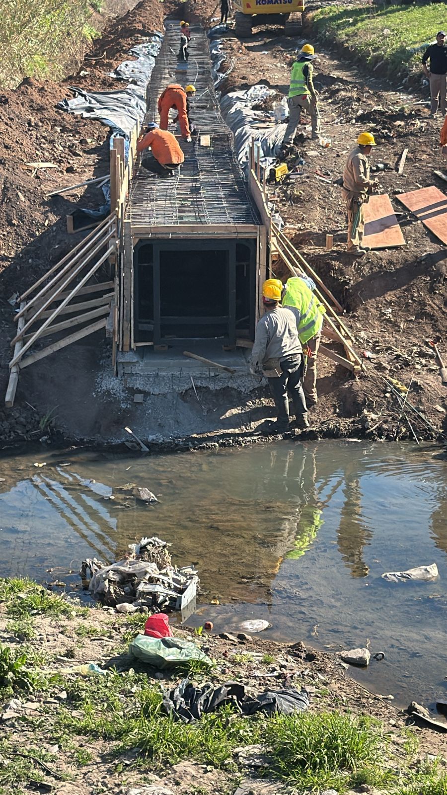 Vista aérea del progreso de una obra vial.